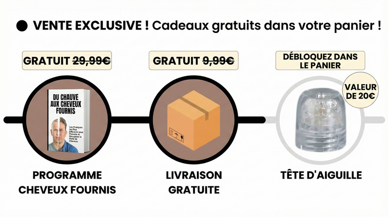 Je laisse cet avis pour obtenir ma réduction, mais je vais être totalement honnête sur mon expérience. Commande passée vers novembre : livraison rapide, aucun souci. À réception, j’ai suivi les instructions : c’est simple, mais ce n’est pas “1 minute” — plutôt 3 à 4 minutes quand on fait toute la zone. Aucune douleur, et surtout aucune rougeur/cicatrice. Les 2 premières semaines : pas de résultat visible, mais ma chute de cheveux s’est arrêtée. Vers la 5e semaine, j’ai commencé à voir les premiers petits cheveux. Au bout de 6 mois, j’ai vraiment retrouvé une densité que je n’espérais plus. Très satisfait.